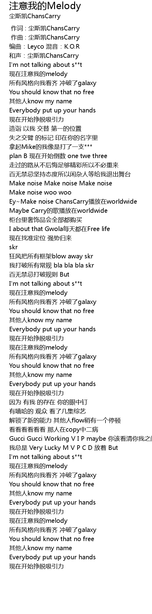 | [00:46.447] | Ey~Make noise ChansCarry播放在worldwide |