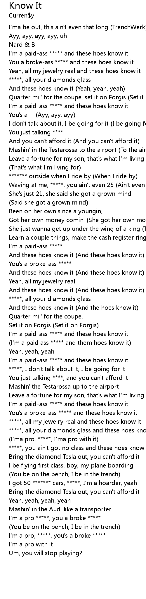 | [01:22.23] | (I'm a paid ass ***** and them hoes know it) |