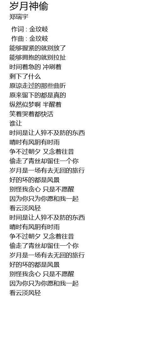 | [01:55.442] | 偷走了青丝却留住一个你 |