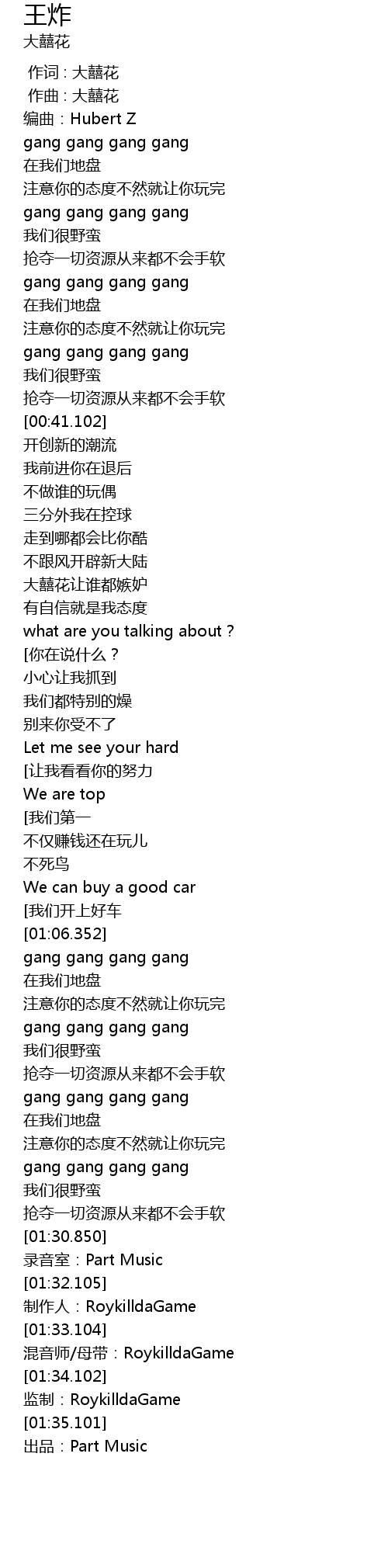 | [00:01.000] | zuò qǔ : dà xǐ huā |