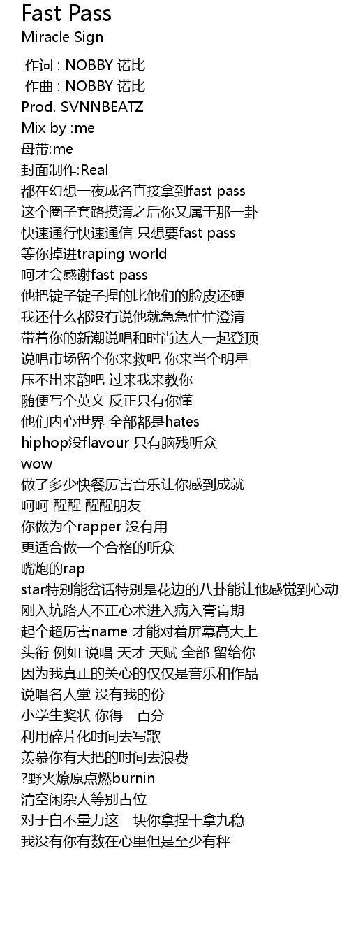 | [00:23.889] | 都在幻想一夜成名直接拿到fast pass |