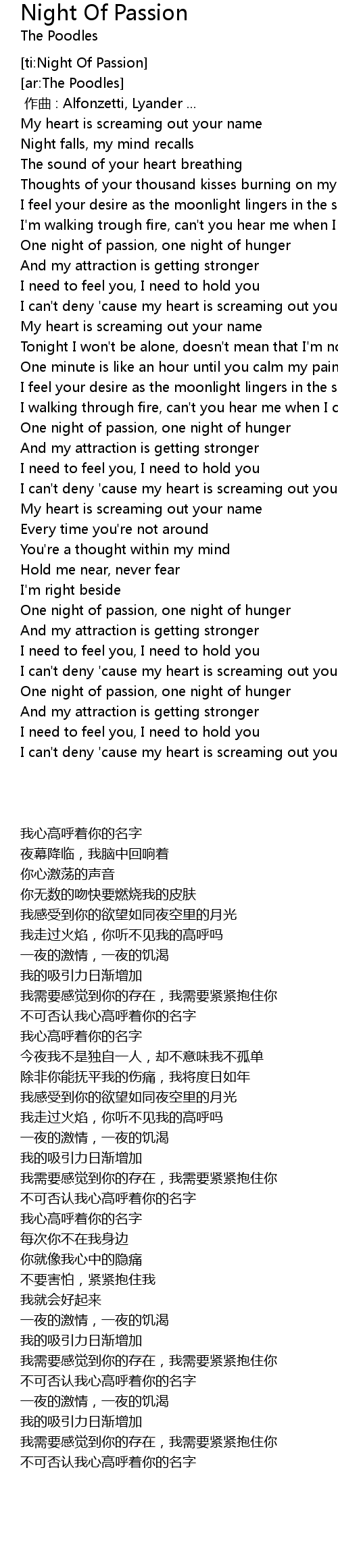 | [00:54.37] | I can' t deny ' cause my heart is screaming out your name |
