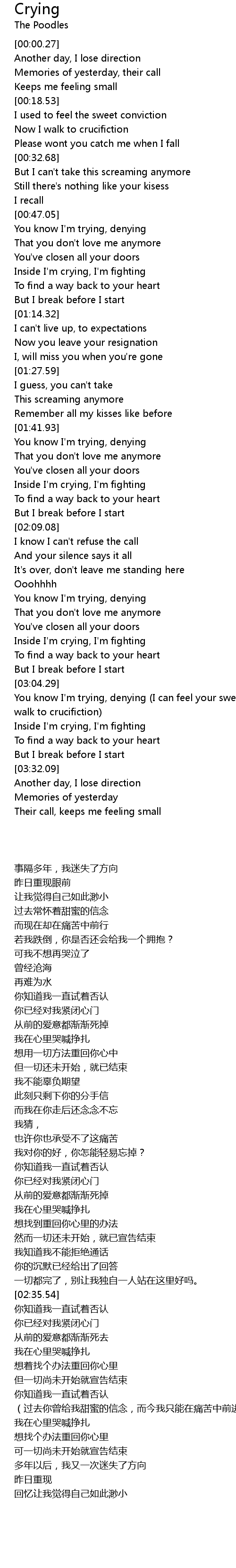 You know I'm trying, denying (I can feel your sweet conviction,now I walk to crucifiction) |