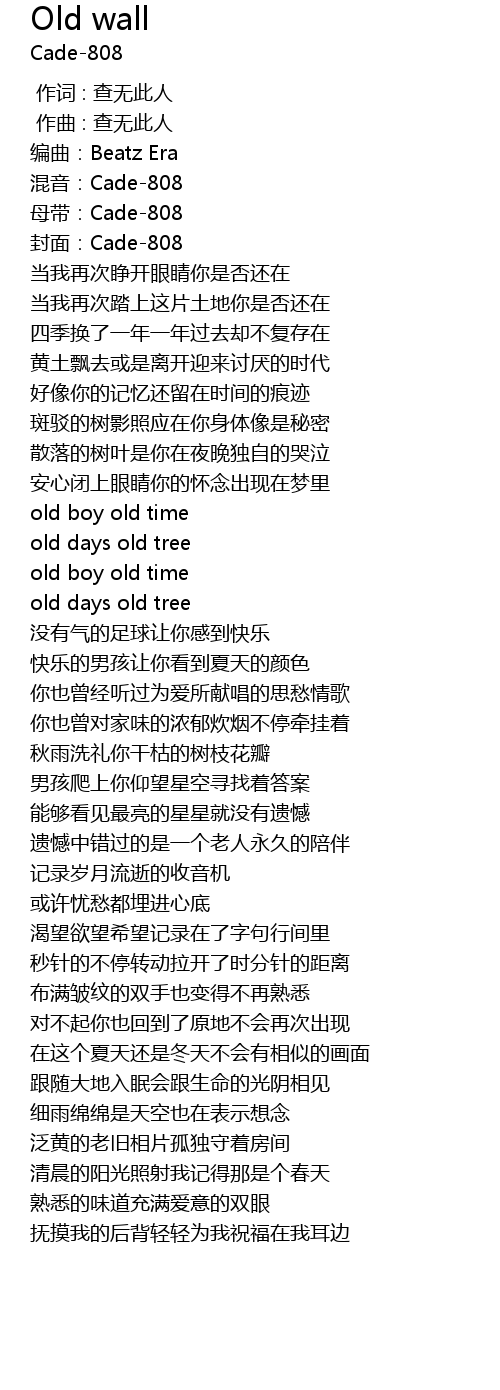 | [00:00.000] | 作词 : 查无此人 |