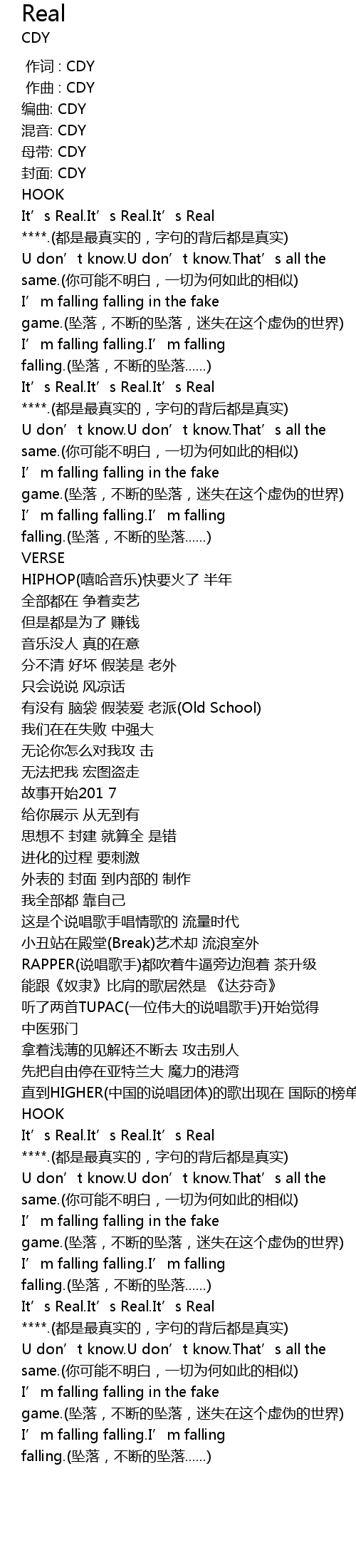 | [01:41.280] | It’s Real.It’s Real.It’s Real ****.(都是最真实的,字句的背后都是真实) |
