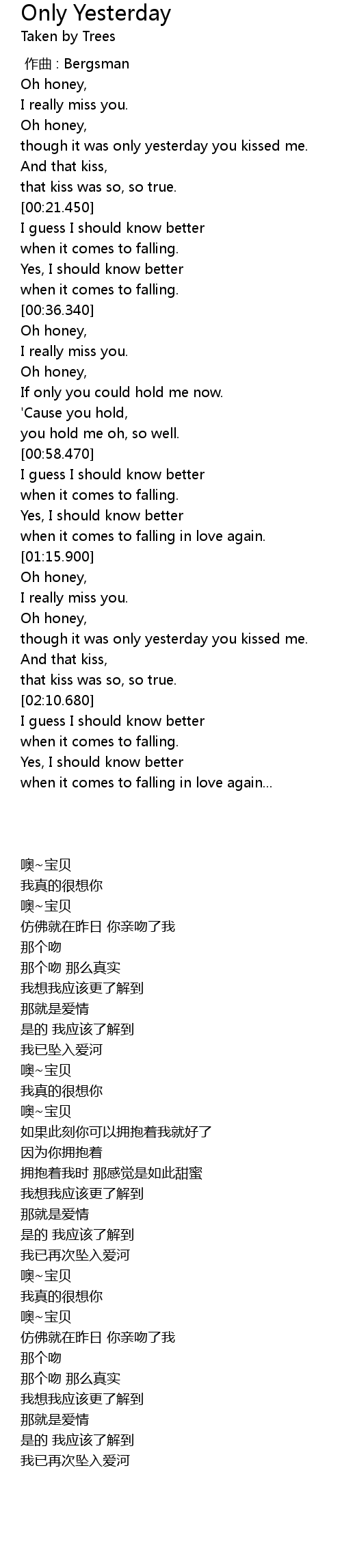 | [00:10.340] | though it was only yesterday you kissed me. |