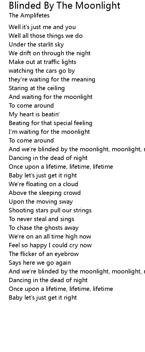 And we're blinded by the moonlight, moonlight, moonlight |