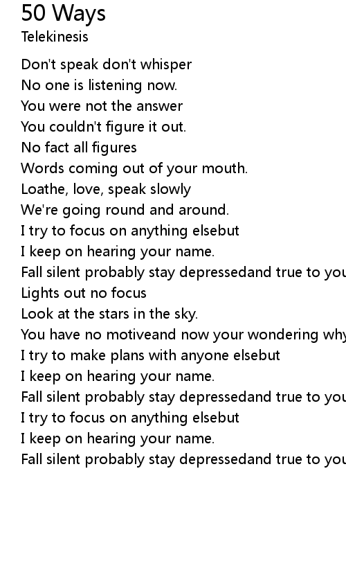 Fall silent probably stay depressedand true to your 50 ways. |