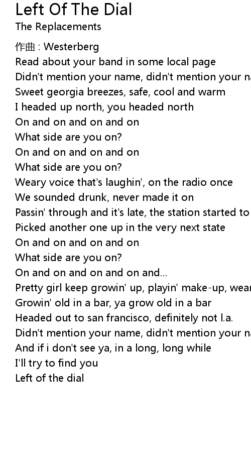 | Song | Left Of The Dial |