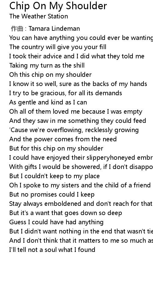 | [00:43.886] | Oh this chip on my shoulder |