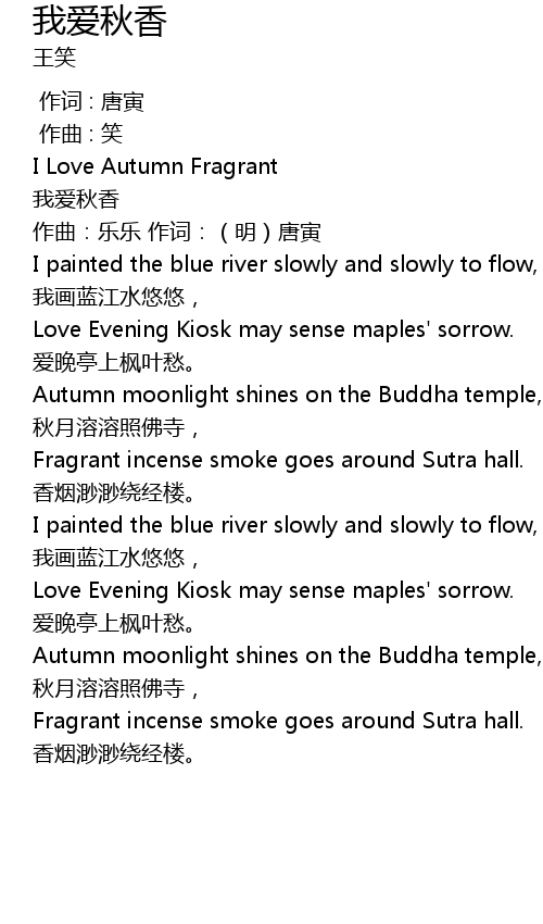 | [00:21.678] | I Love Autumn Fragrant |