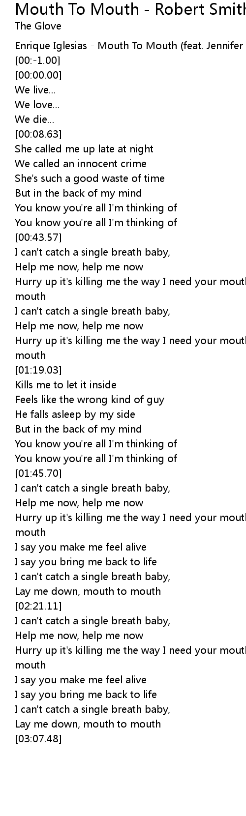 Mouth To Mouth - Robert Smith Guide Vox Lyrics