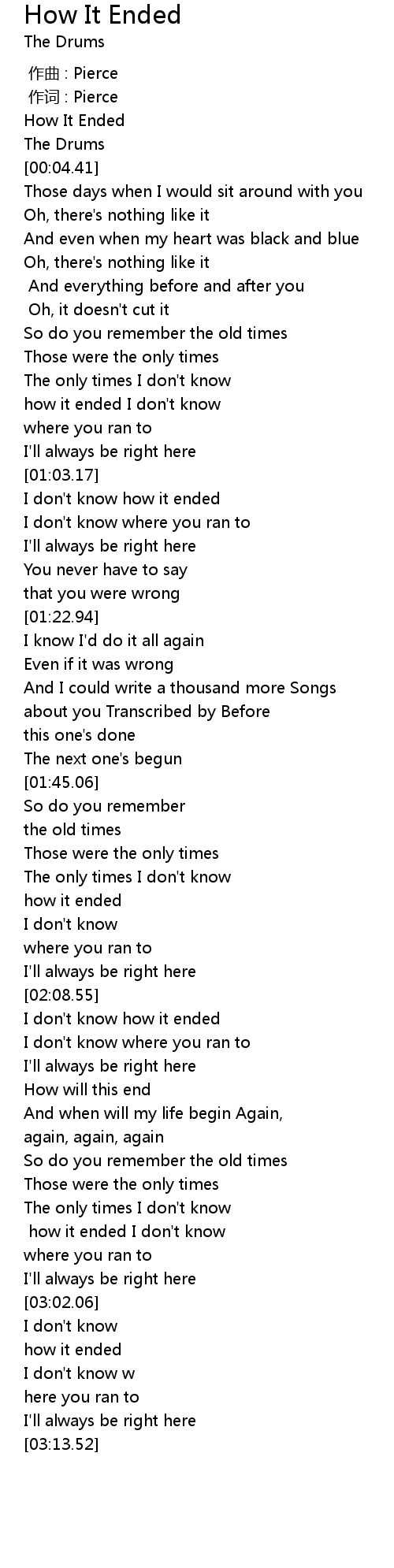 | [03:05.86] | how it ended |
