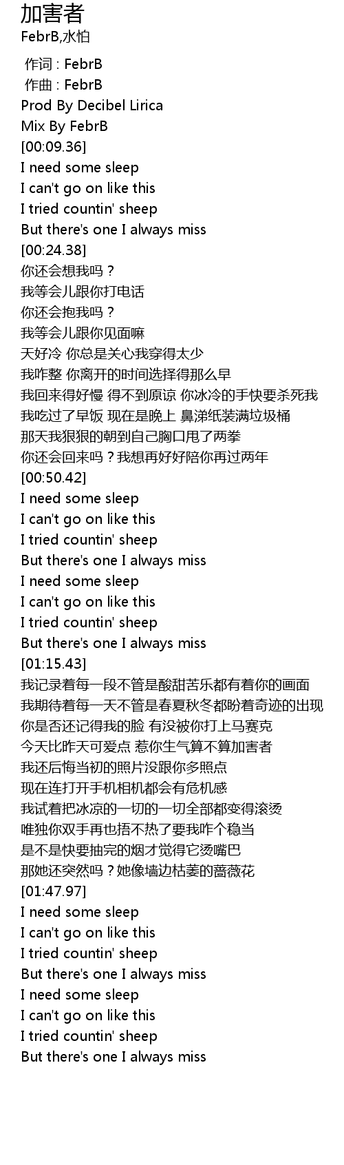| [00:13.36] | I need some sleep |