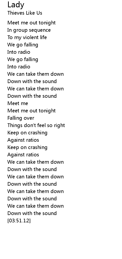 | [00:40.89] | Meet me out tonight |