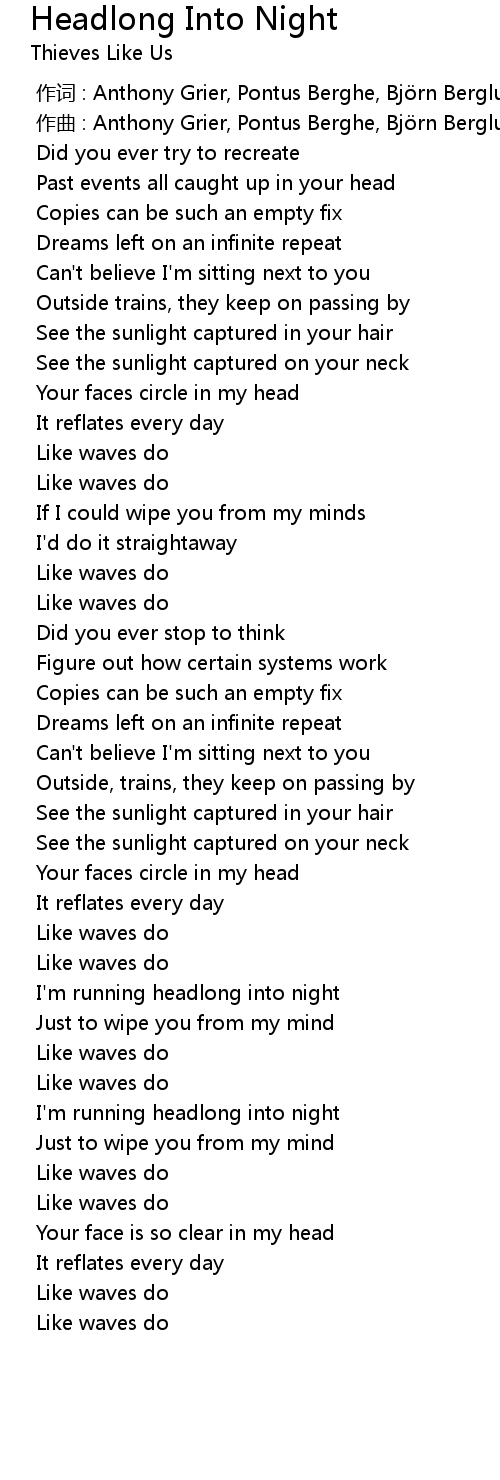 | [04:50.283] | I' m running headlong into night |