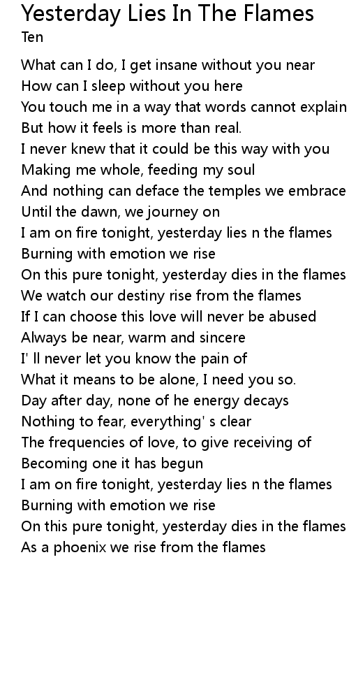 I am on fire tonight, yesterday lies n the flames |