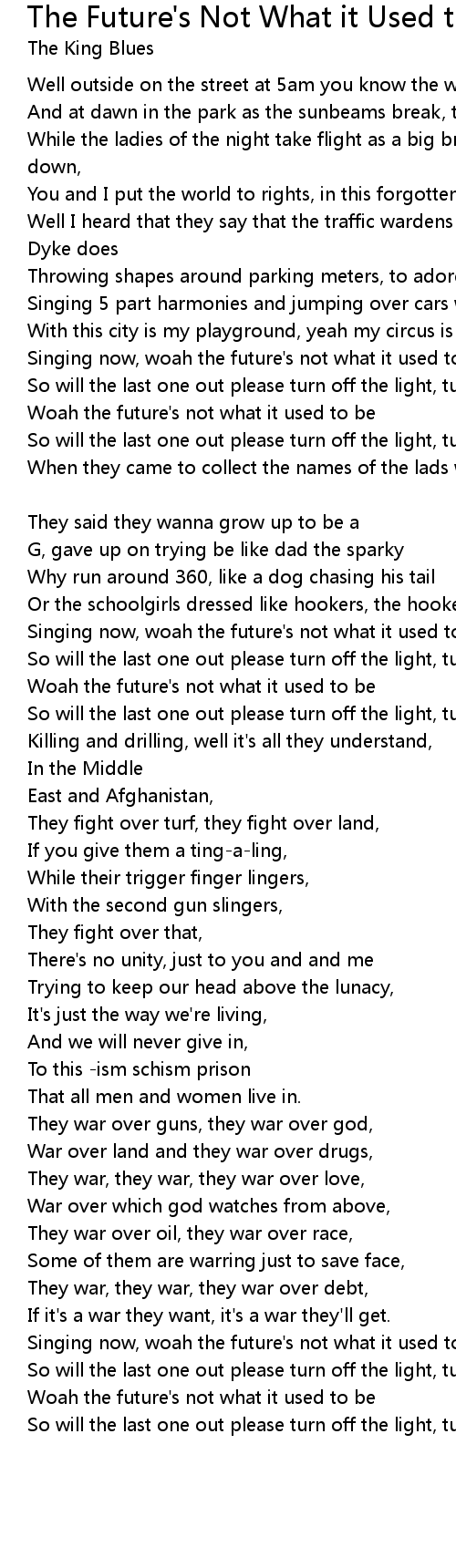 And at dawn in the park as the sunbeams break, the drunks sing amazing grace |