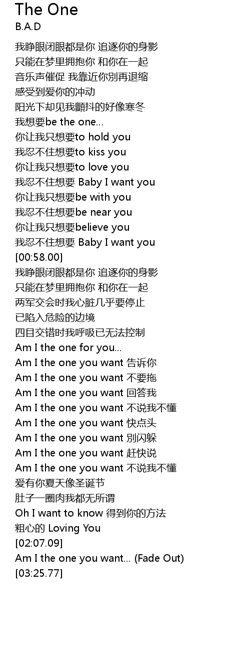 | [02:13.81] | Am I the one you want... (Fade Out) |