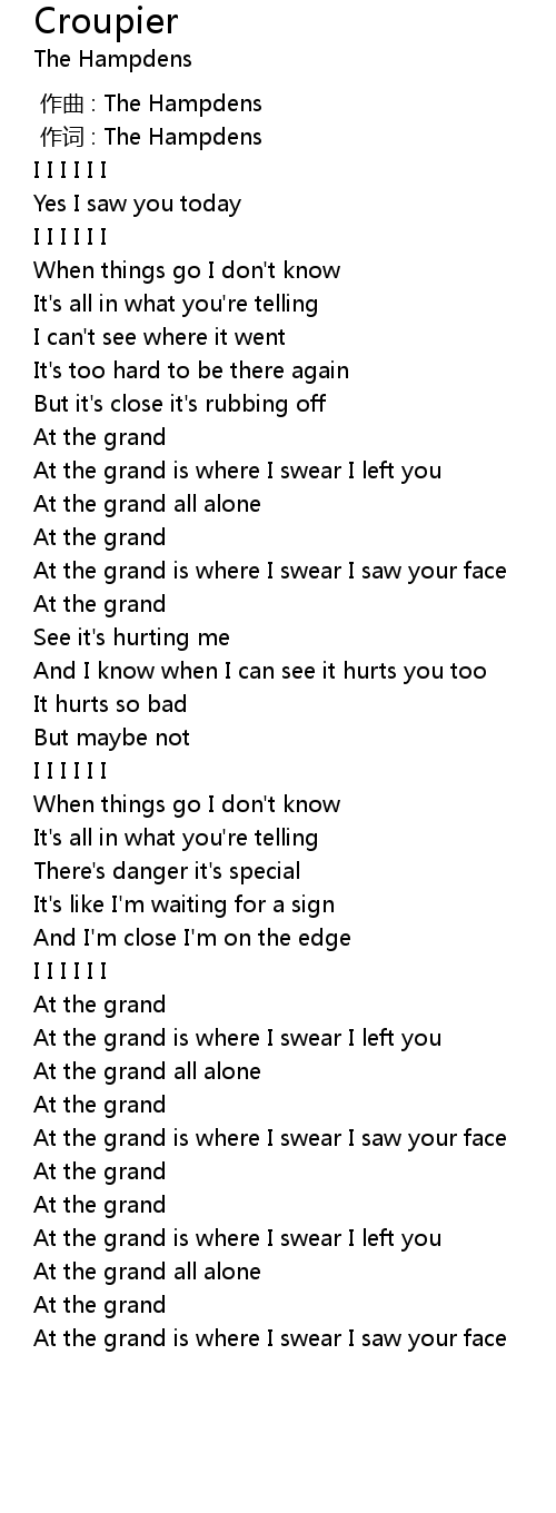 | [00:59.10] | At the grand is where I swear I left you |