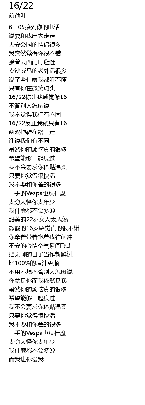 | [00:55.62] | 16 22 fǎn zhèng wǒ jiù zhǐ yǒu 16 |
