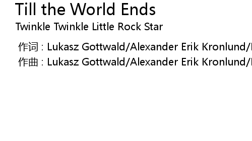 | [00:00.000] | 作曲 : Lukasz Gottwald/Alexander Erik Kronlund/Martin Karl Sanberg |
