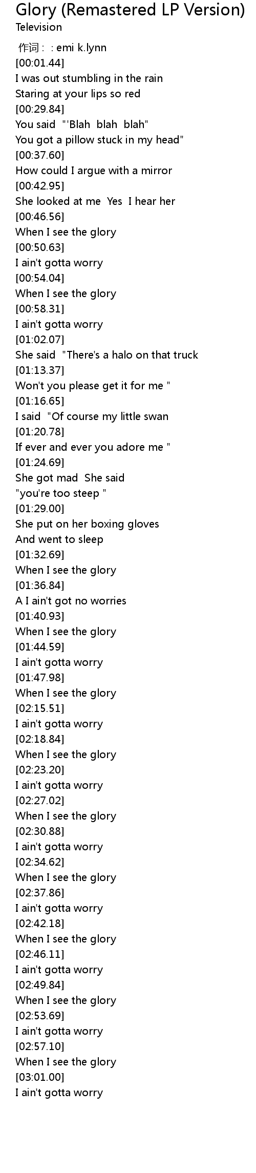 | [02:58.46] | When I see the glory |