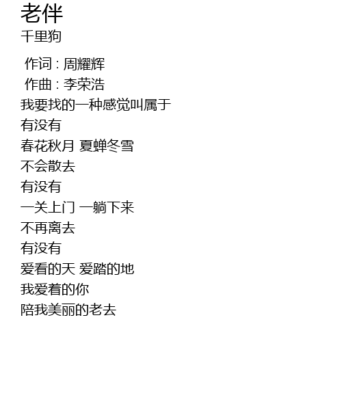 | [00:31.465] | 陪我美丽的老去 |