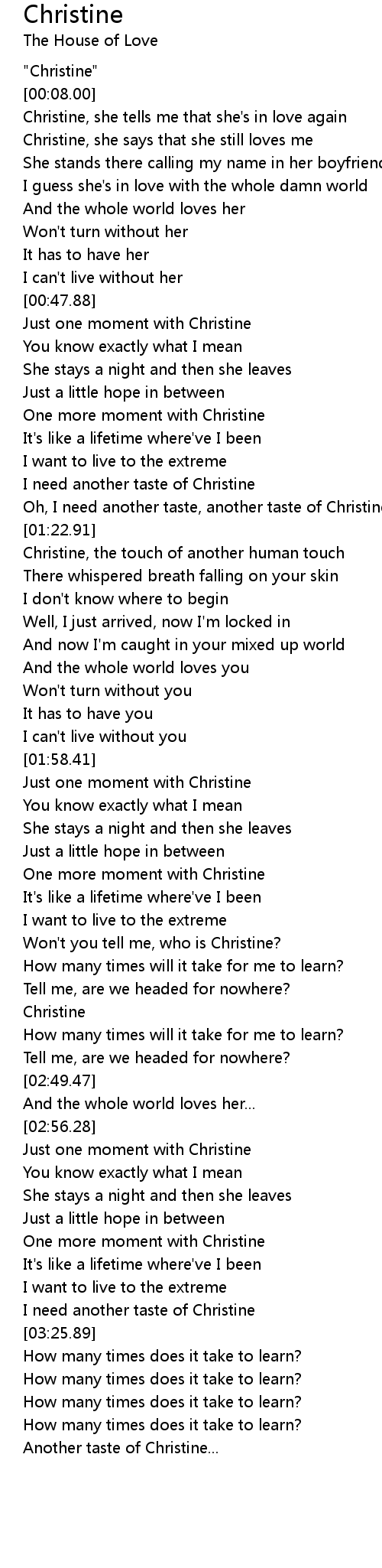 Christine, she tells me that she's in love again |