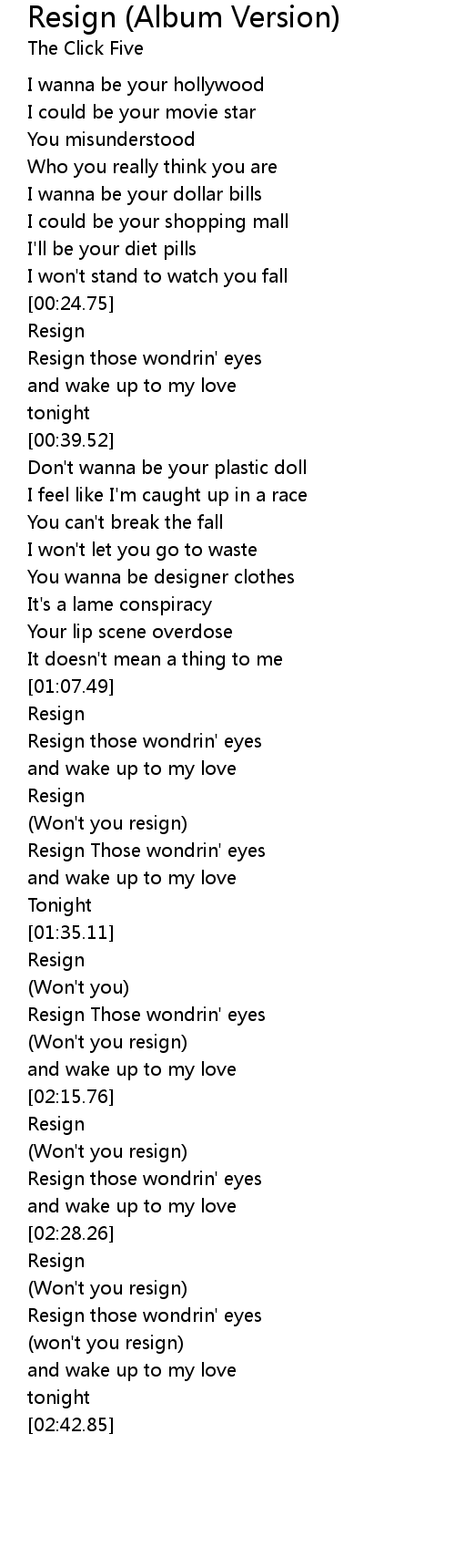 (Won't you resign) |