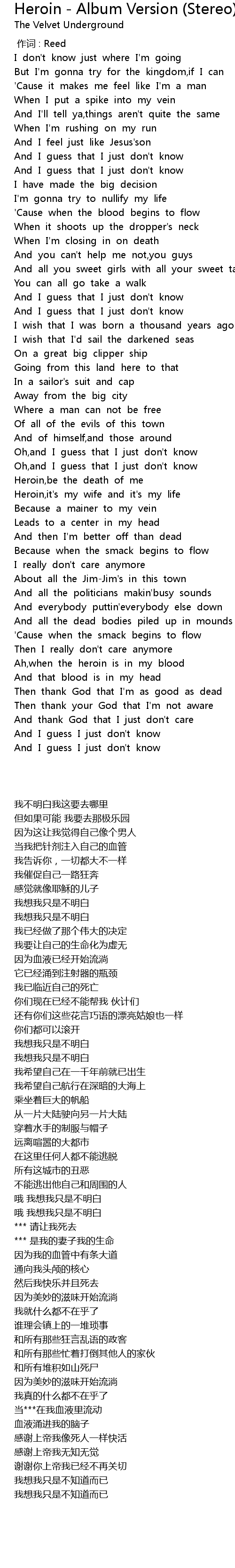 | [04:38.175] | Heroin, it' s my wife and it' s my life |
