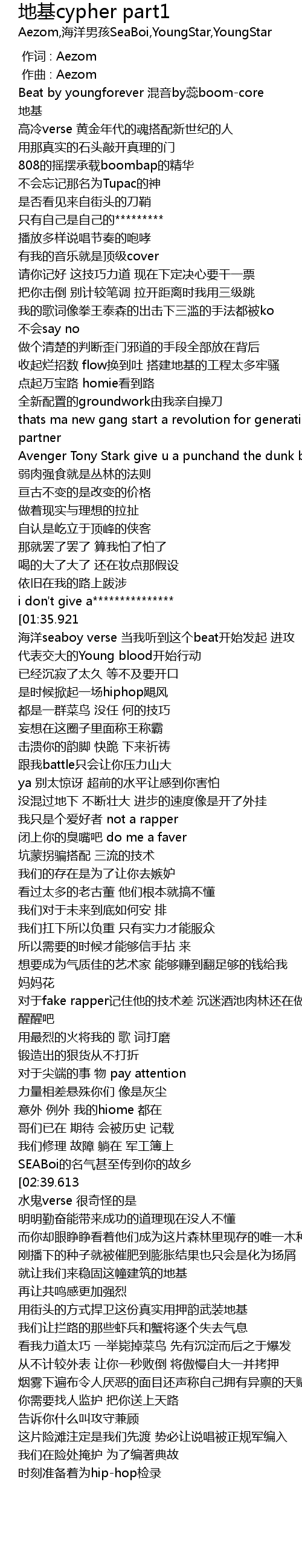 | [01:36.711] | 海洋seaboy verse 当我听到这个beat开始发起 进攻 |