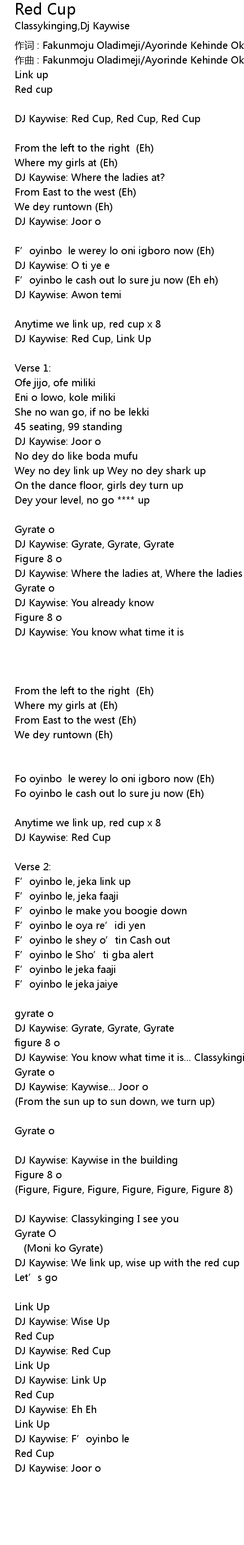 | 作词 : Fakunmoju Oladimeji/Ayorinde Kehinde Okiki | |