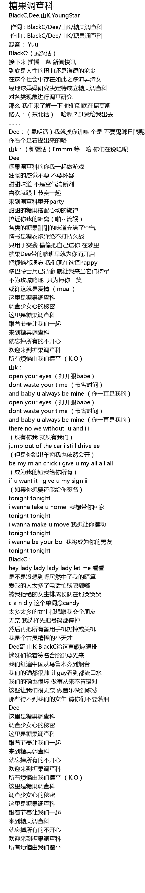 | [00:00.000] | 作词 : BlackC/Dee/山K/糖果调查科 |