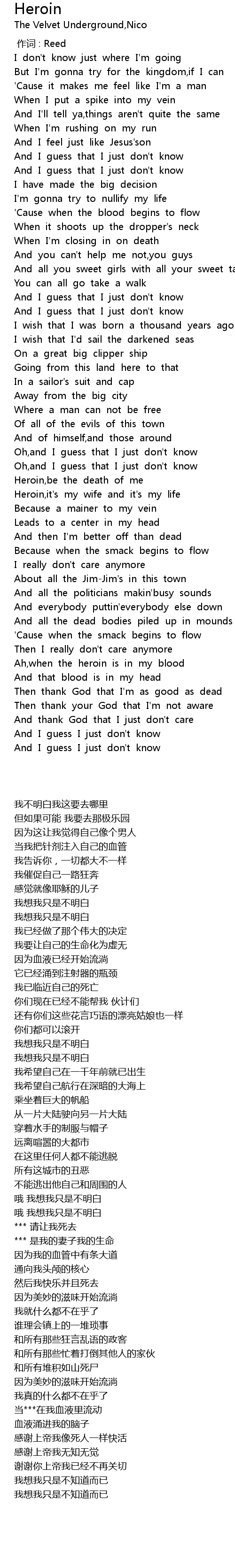 | [04:38.175] | Heroin, it' s my wife and it' s my life |