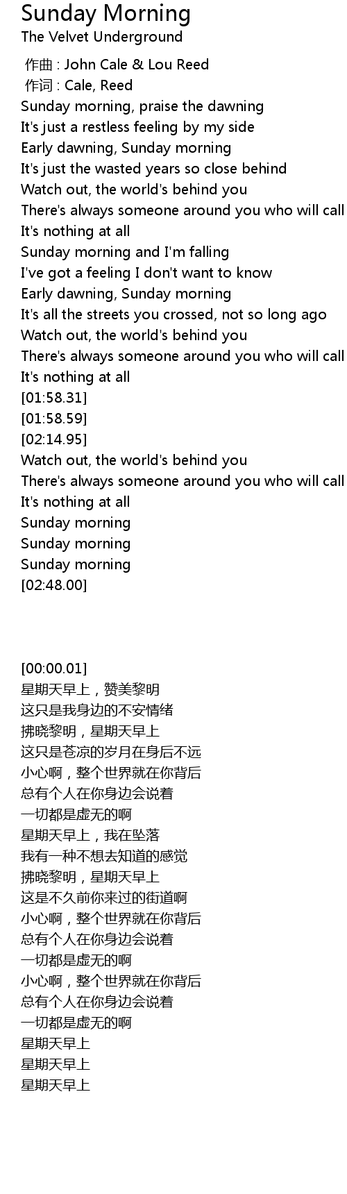 | [00:00.00] | 作曲 : John Cale & Lou Reed |