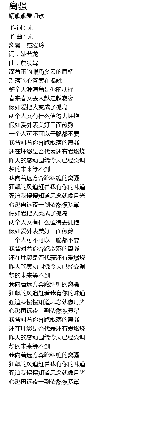 | [00:00.299] | 离骚 - 戴爱玲 |