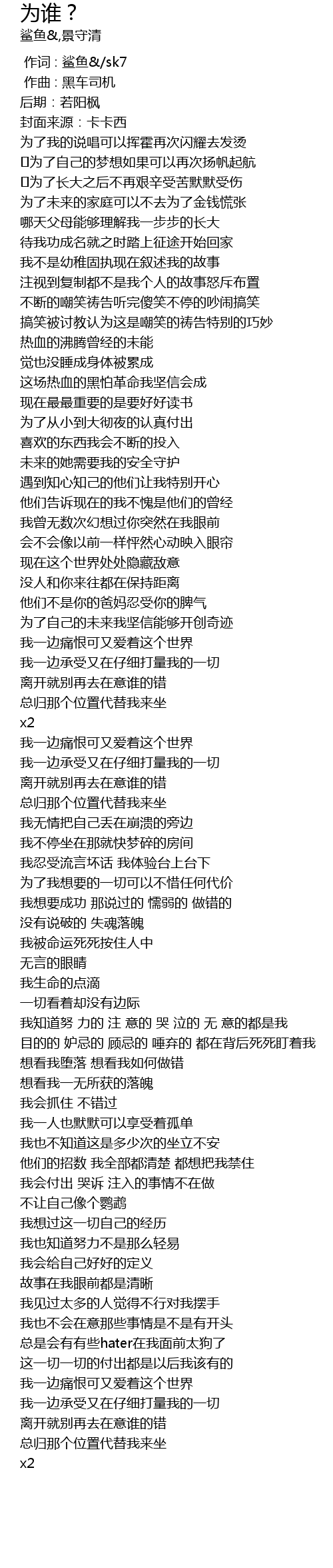 | [00:00.000] | 作词 : 鲨鱼&/sk7 |