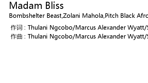 | [00:00.00-1] | 作词 : Thulani Ngcobo/Marcus Alexander Wyatt/Siyavuya Makuzeni |