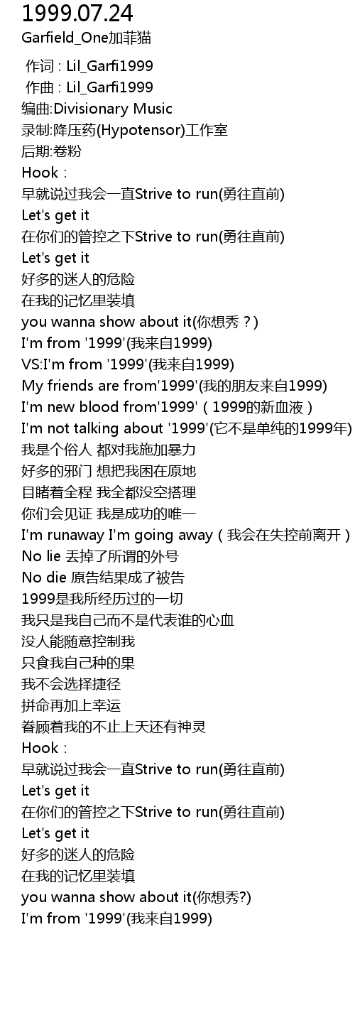 | [00:00.000] | 作词 : Lil_Garfi1999 |