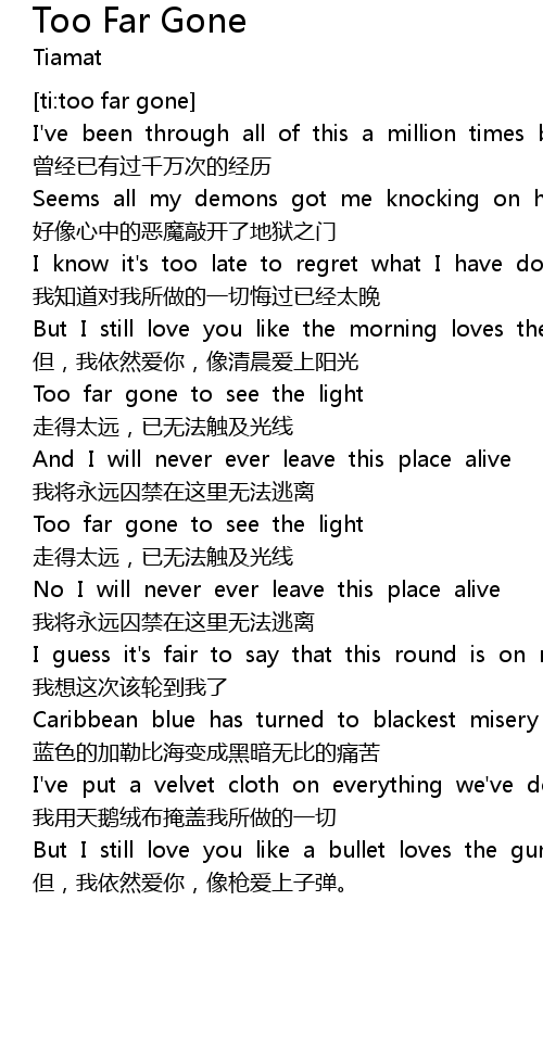 | [ti:too far gone] | |