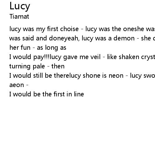| lucy was my first choise - lucy was the oneshe was my silent voice - when all was said and doneyeah, lucy was a demon - she did it all my wayshe'd give me all her fun - as long as | |