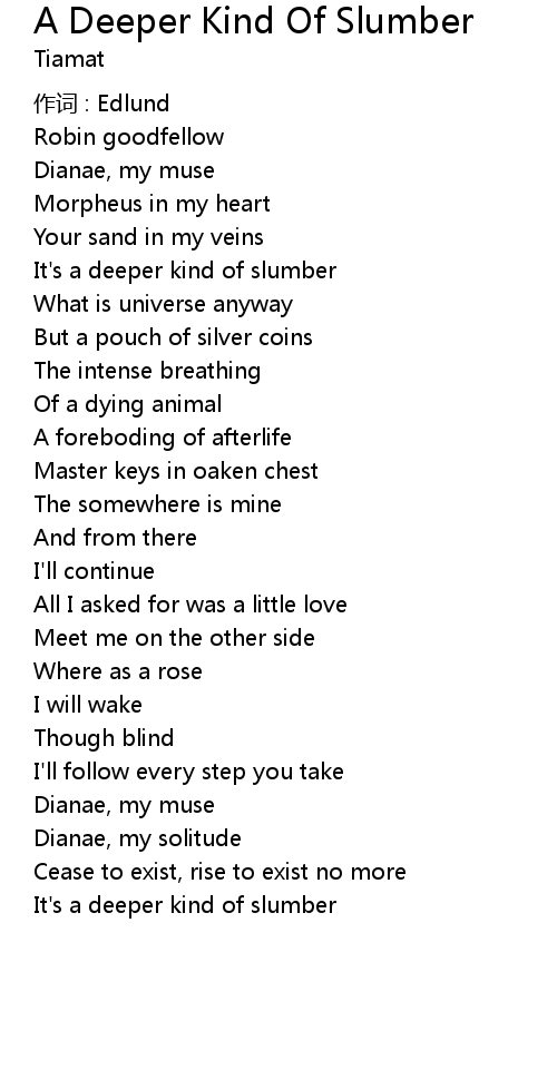| Song | A Deeper Kind Of Slumber |