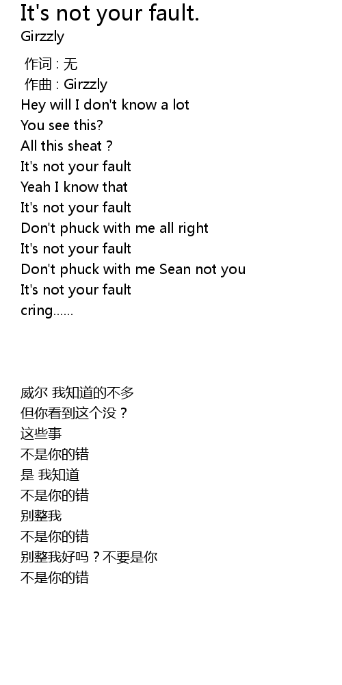 | [01:59.205] | Don' t phuck with me Sean not you |