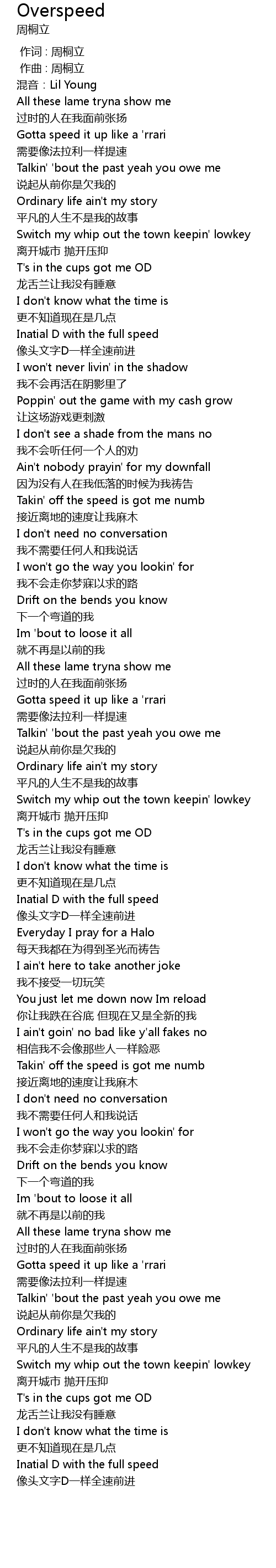 | [00:21.844] | Gotta speed it up like a 'rrari |