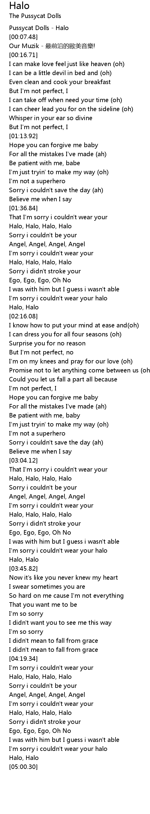 | [00:01.53] | Pussycat Dolls Halo |