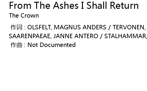 | [00:00.000] | 作词 : OLSFELT, MAGNUS ANDERS / TERVONEN, MARKO MATIAS / SAARENPAEAE, JANNE ANTERO / STALHAMMAR, JONAS BO / SUNESSON, MARCUS JAN |