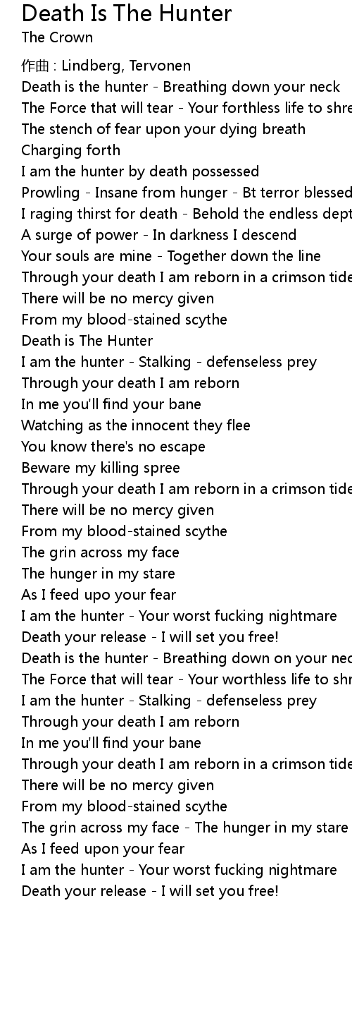 | Death is the hunter - Breathing down on your neck | |