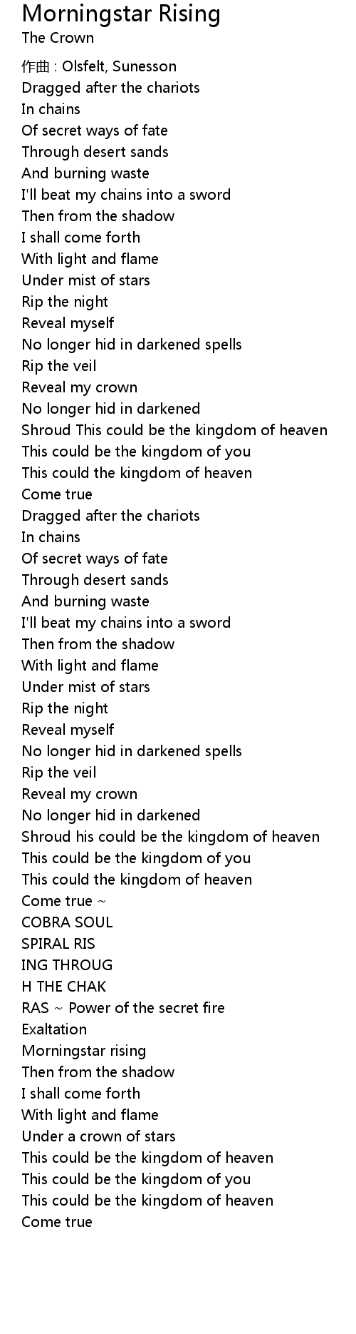 | Song | Morningstar Rising |