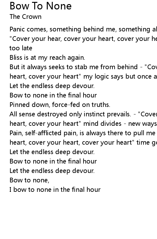 Bow to none, |